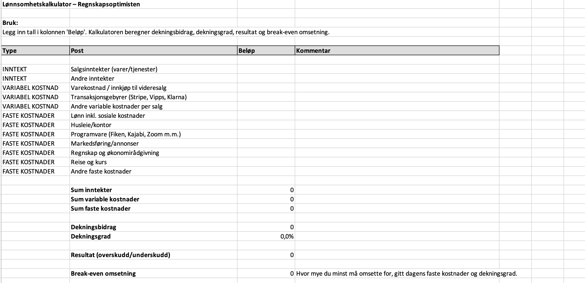 Lønnsomhetskalkulatoren