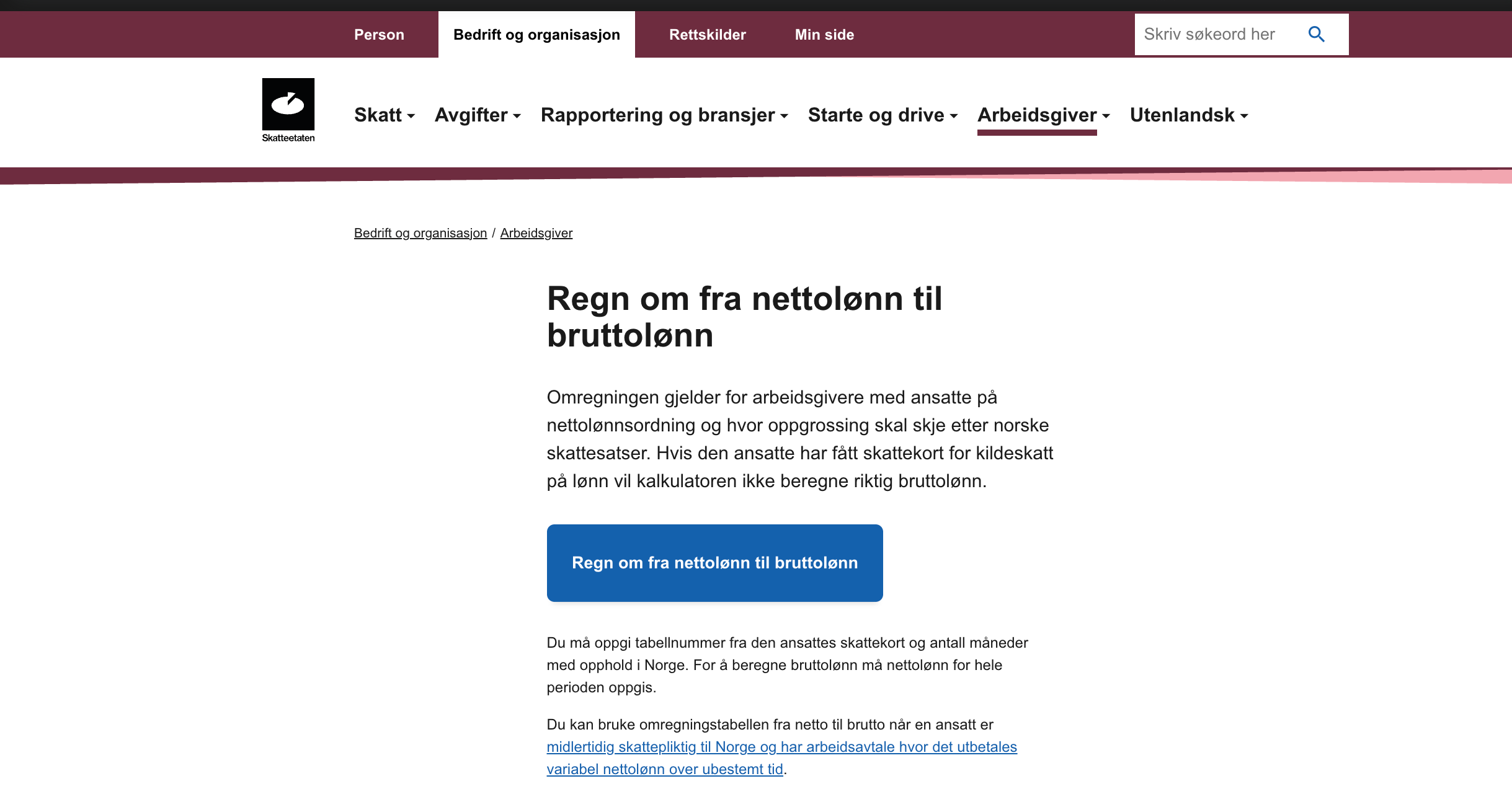 Denne kalkulatoren er levert av Skatteetaten.