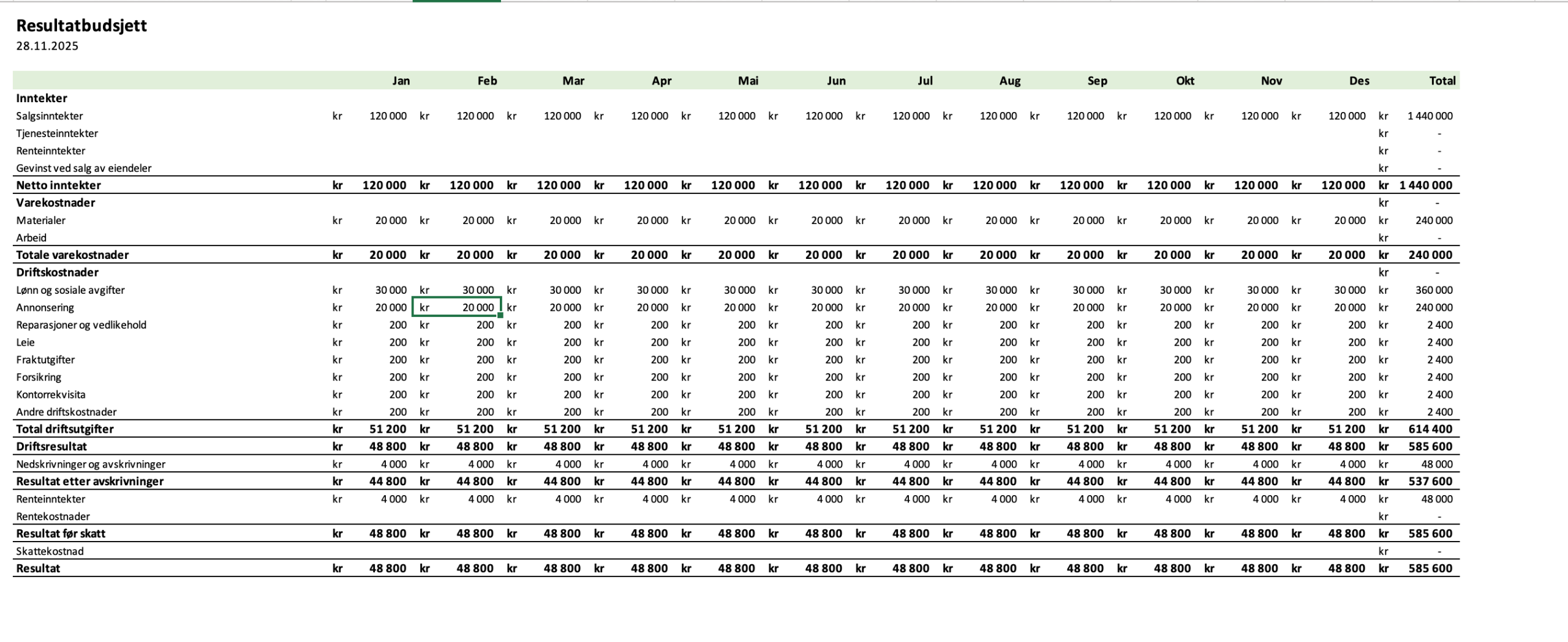 Her kan du laste ned Excel mal for fordelsbeskatning for fri bil. Brukes som vedlegg for bokføring i regnskapet